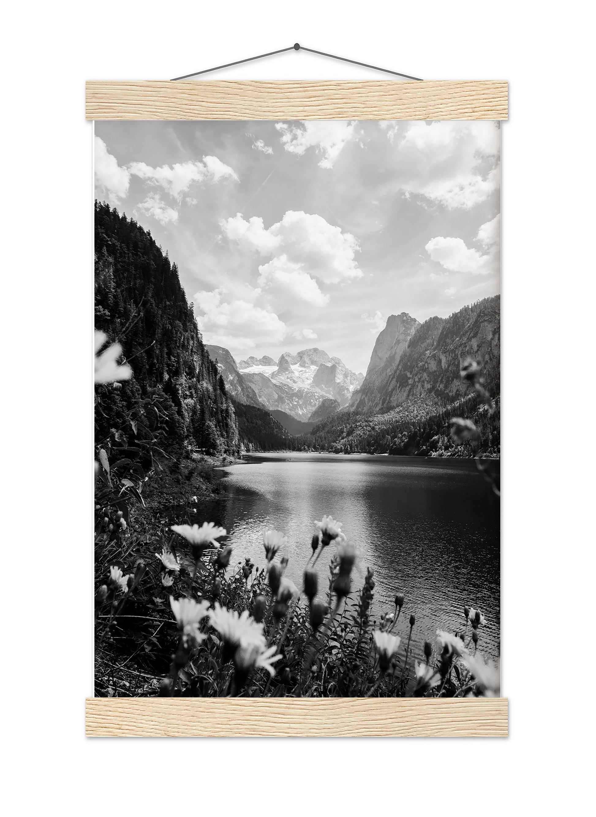 Austria Lake and Mountains Photo: Vintage Black and White Landscape (Digital Download)