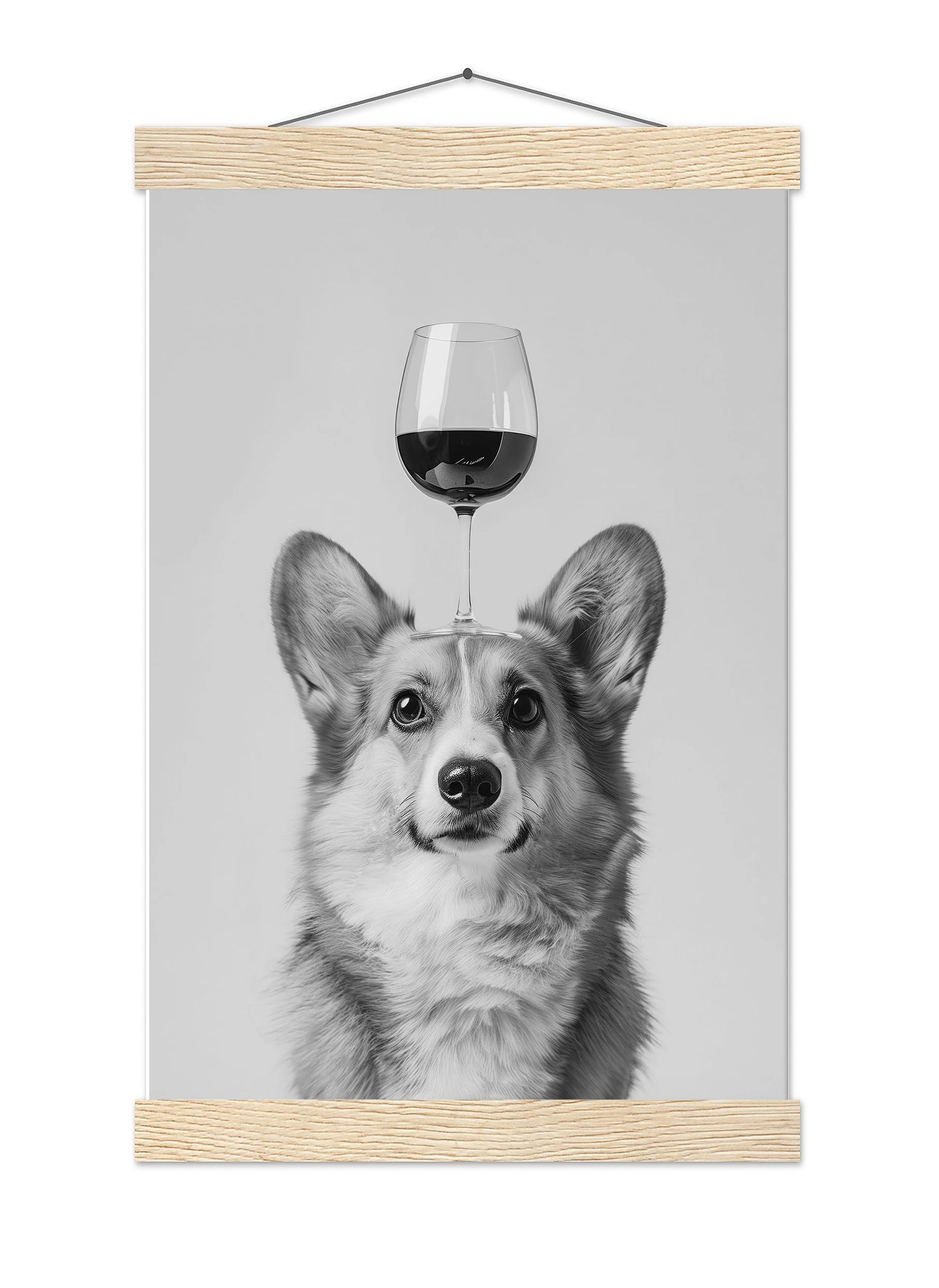 Corgi Balancing Wine Glass Print: Funny Bar Cart Dog Poster, Alcohol Kitchen Decor - Black & White Wall Art ArdorPrints